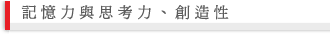 術性的頭腦、創造性的頭腦。開啟右腦記憶的話,可以培養此一右腦的藝術性、創造性。 |